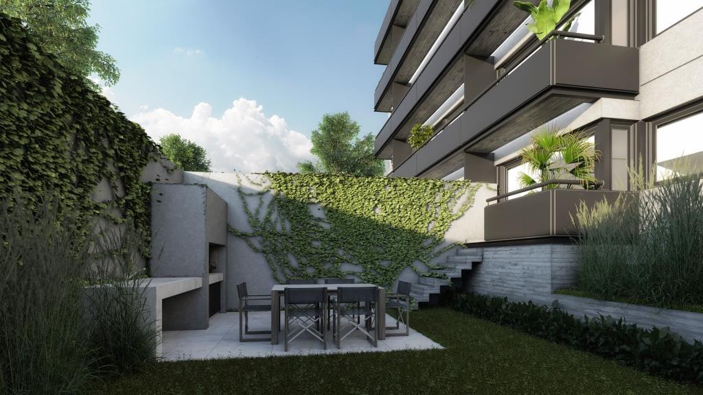 Cuenta con unidades con jardines privados en el 1er piso y terrazas parquizadas privadas con parrilla en el 5to piso y cocheras fijas cubiertas y descubiertas en PB.