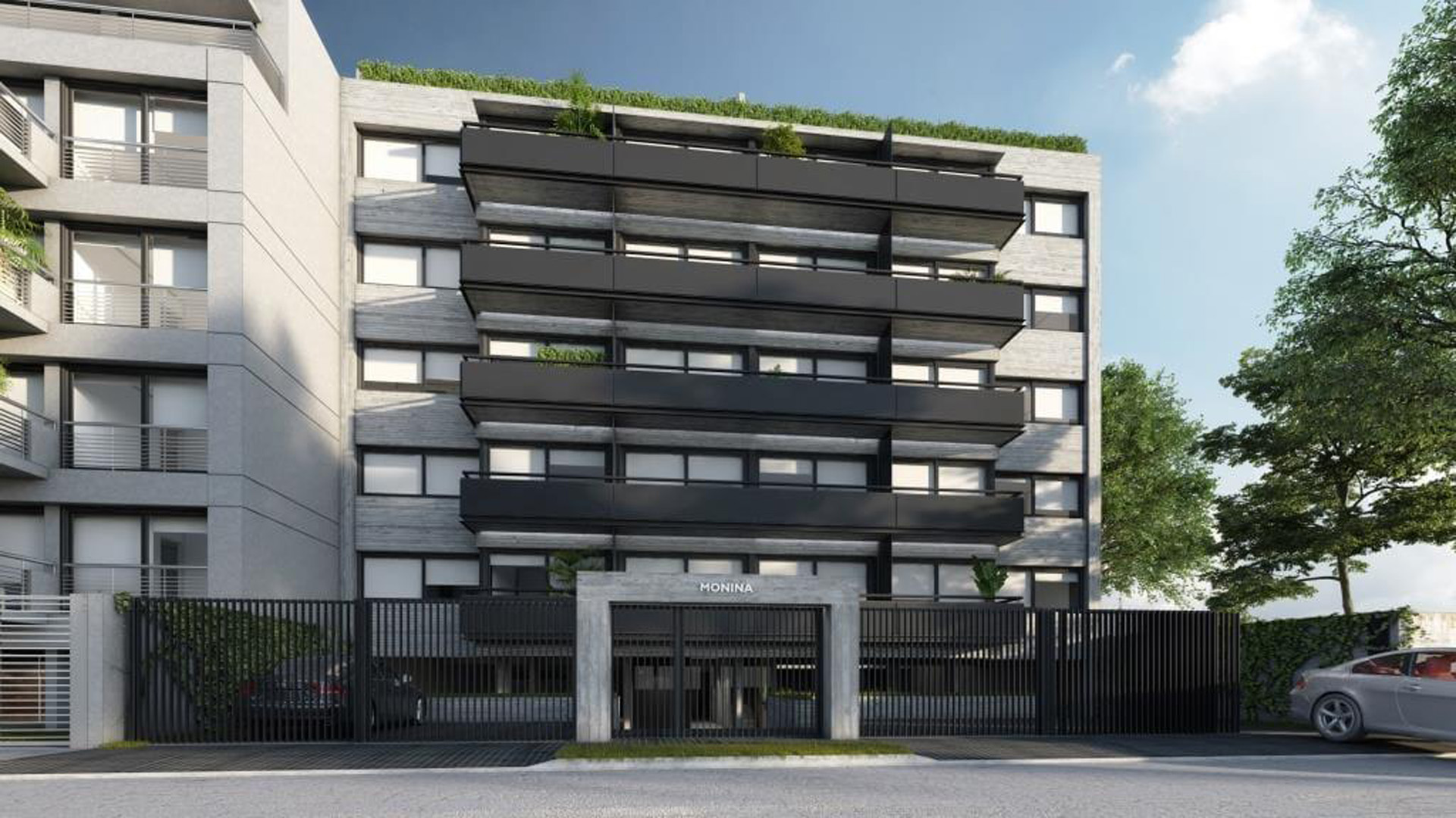 El nuevo emprendimiento MONINA, diseñado por Jochy Carfí, se desarrolla en un volumen de vivienda resuelta en PB y 5 pisos, con departamentos de 2 ambientes hasta 54 m2, con alto estándar de diseño, calidad, nivel de terminaciones y bajo costo de mantenimiento.